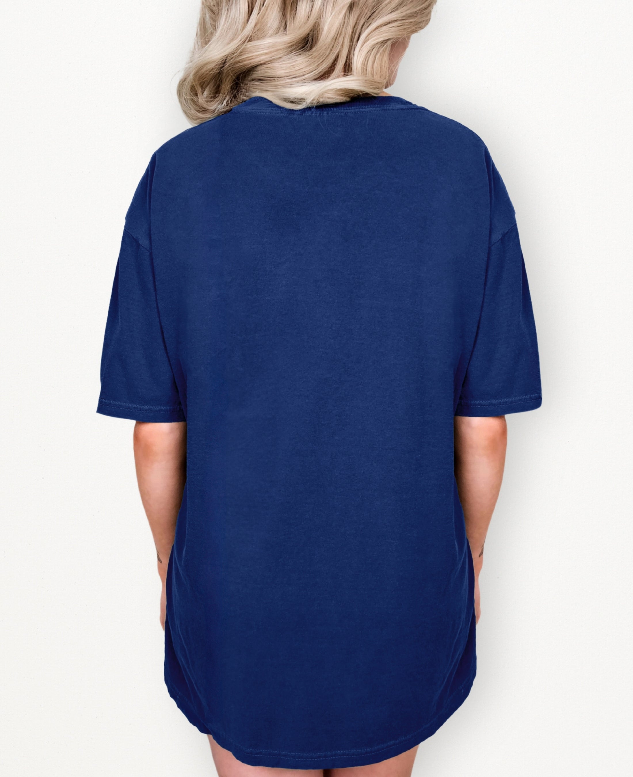 Woman wearing navy in my Fever era hoodie