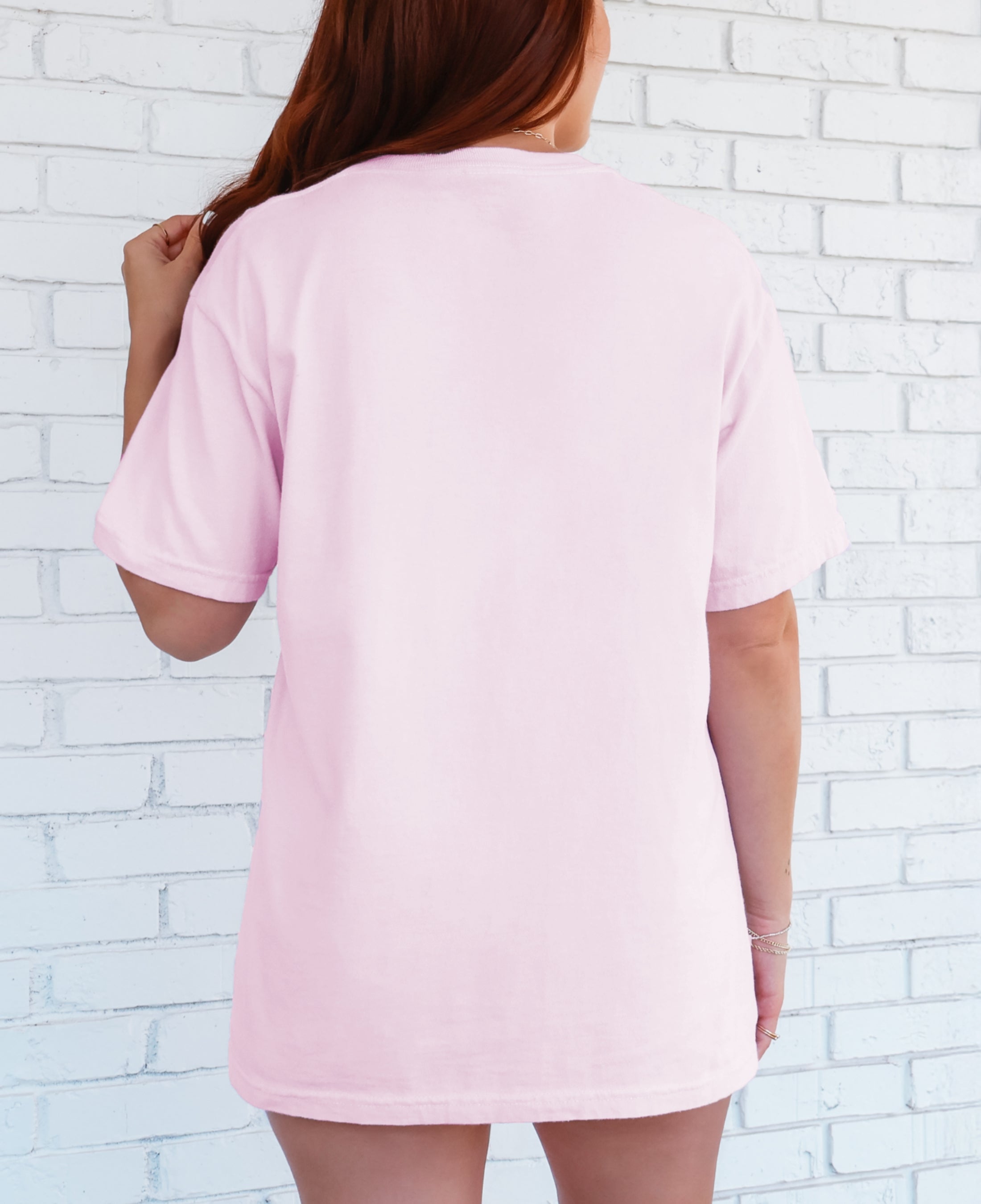 Girl wearing light pink in my Fever era hoodie
