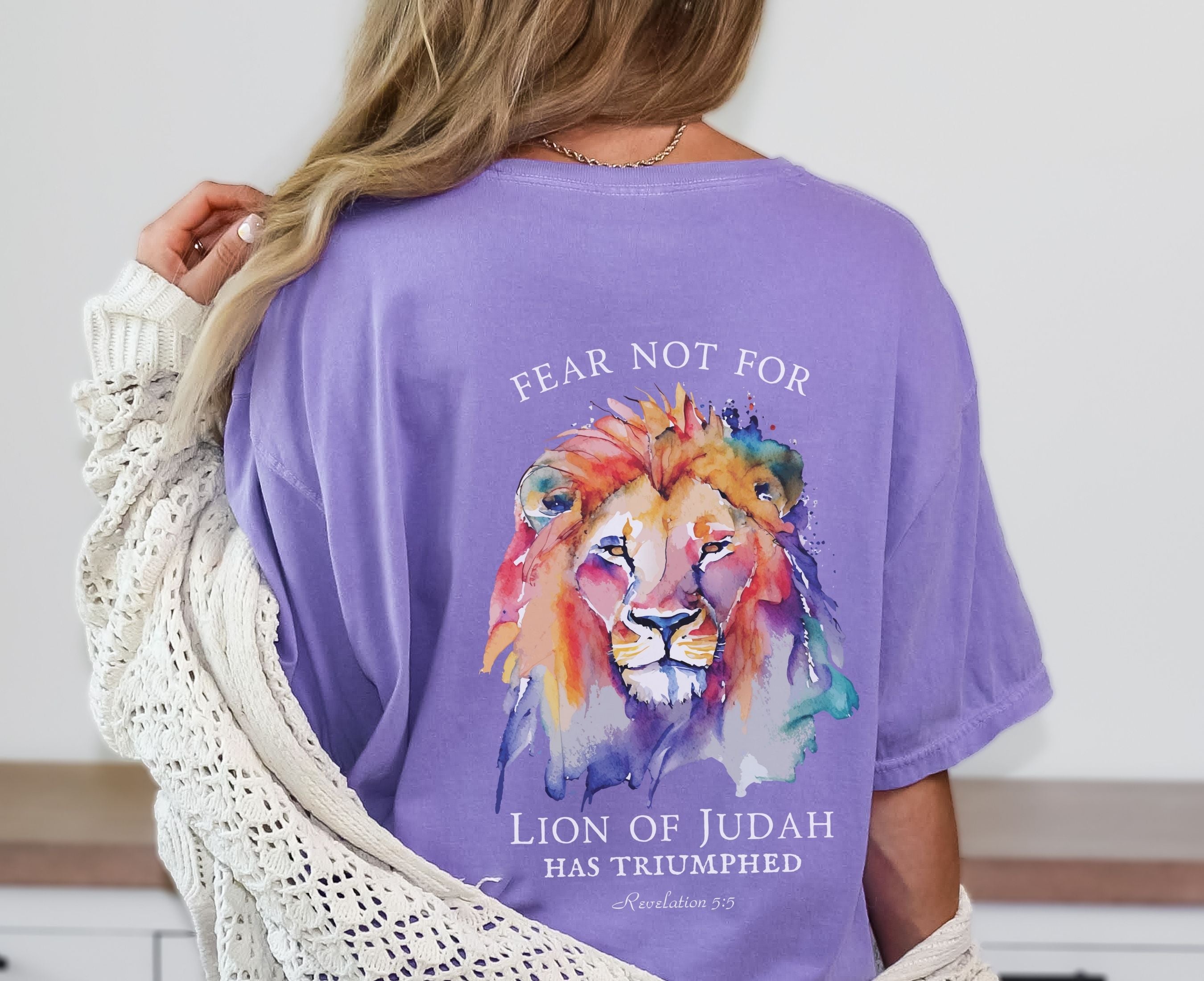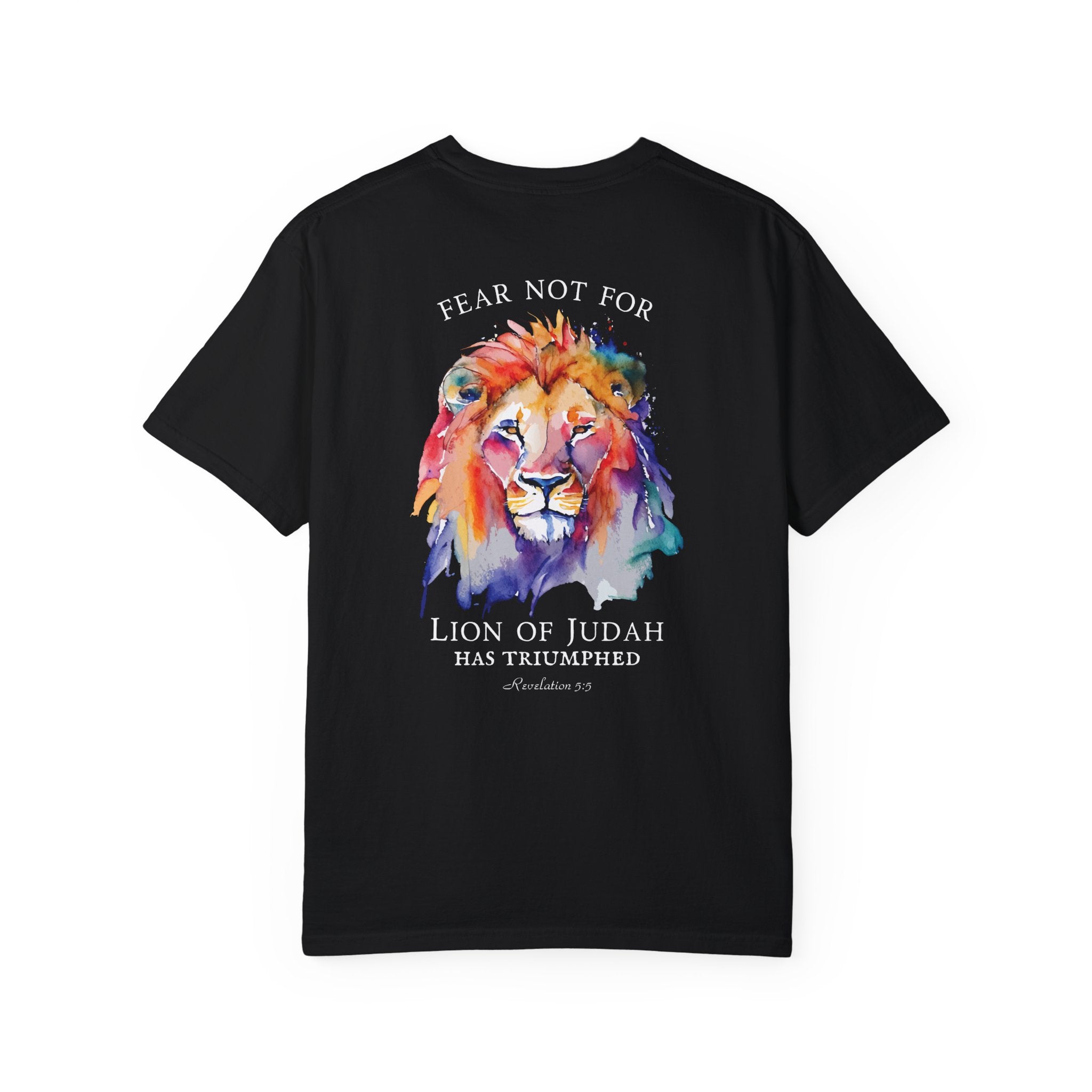 Find comfort and strength in wearing our Comfort Colors® Revelation Bible Verse T-Shirt. Featuring the powerful words of Revelation 5:5, this Lion of Judah shirt serves as a reminder of divine protection and courage. Made with high-quality materials, it provides both comfort and long-lasting wear.