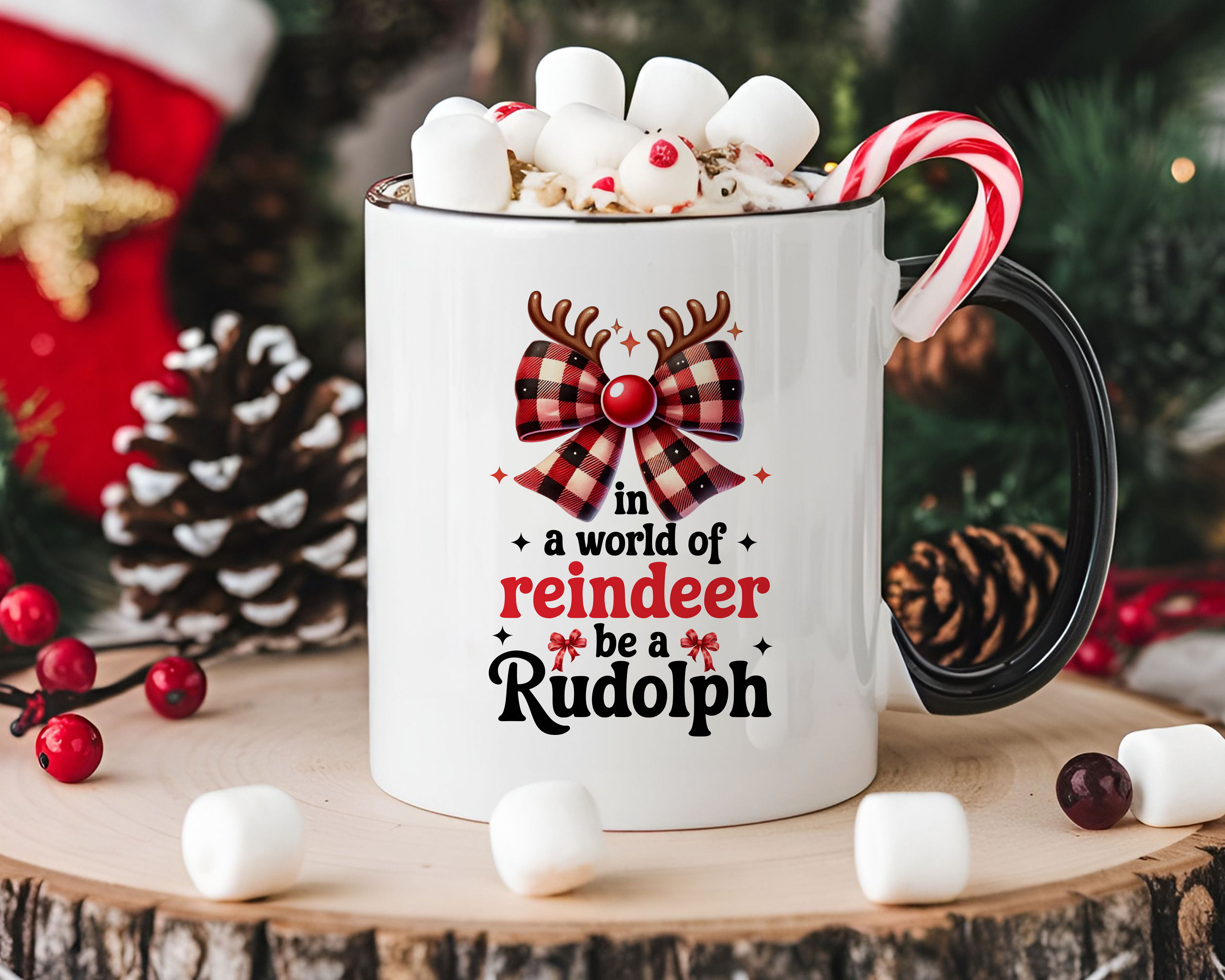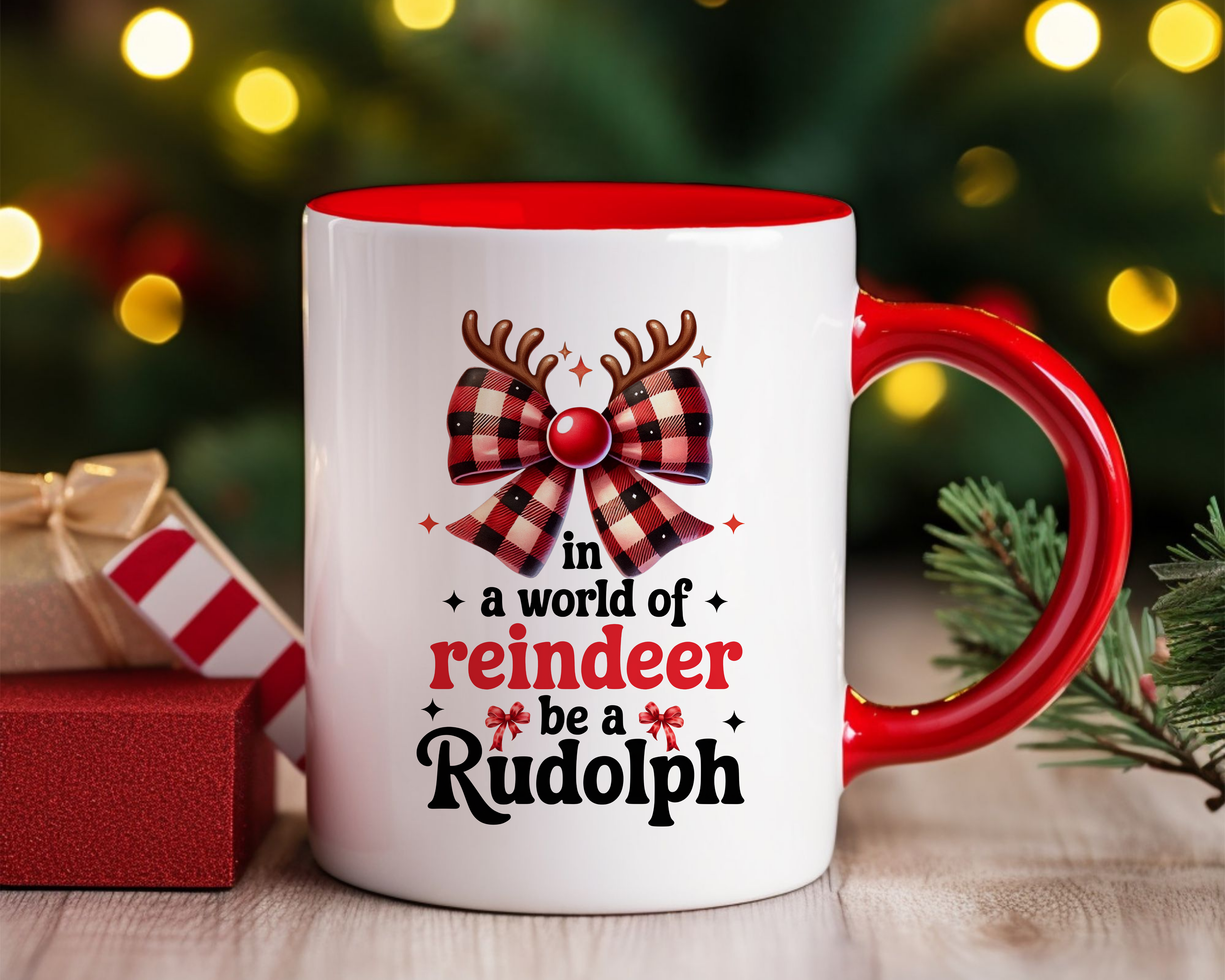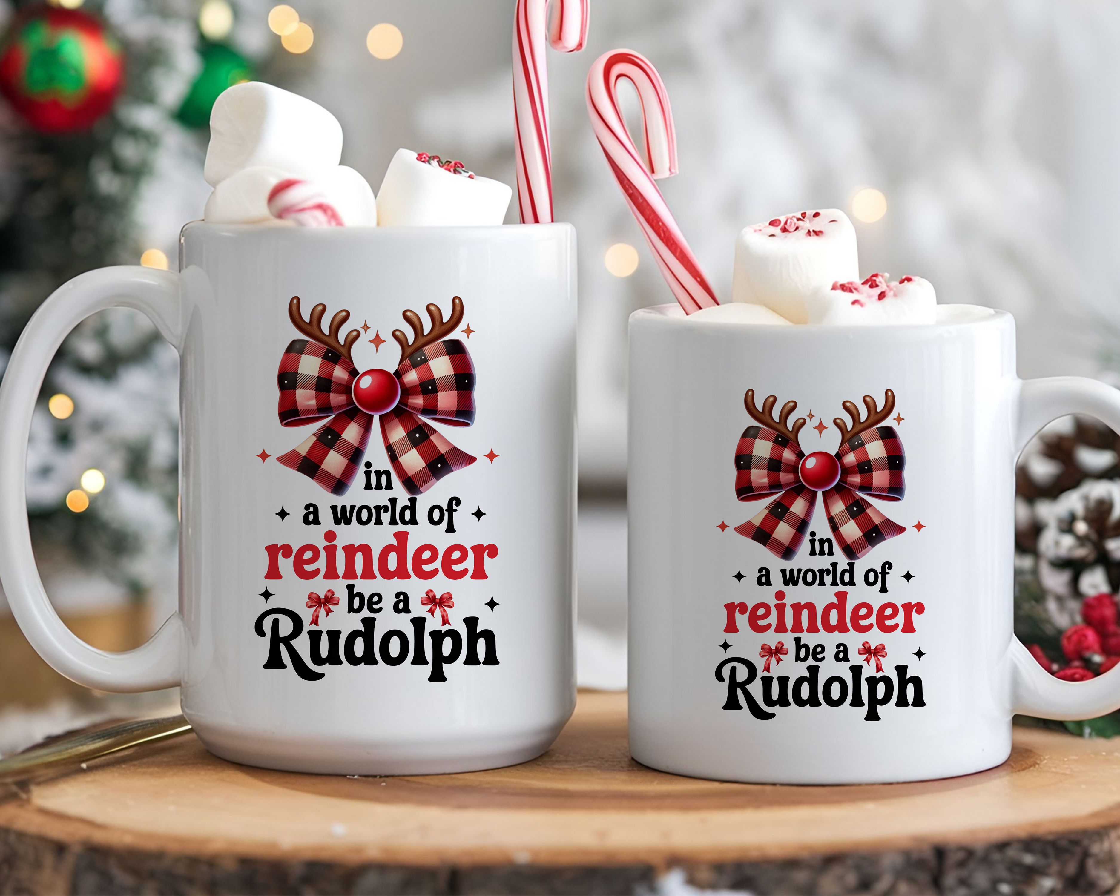 Stand out from the herd with our 'In a World of Reindeer Be a Rudolph' mug. Its cute design and message will make your morning coffee extra special. Holds 11oz or 15oz of your favorite beverage. Don't be afraid to be a little different!