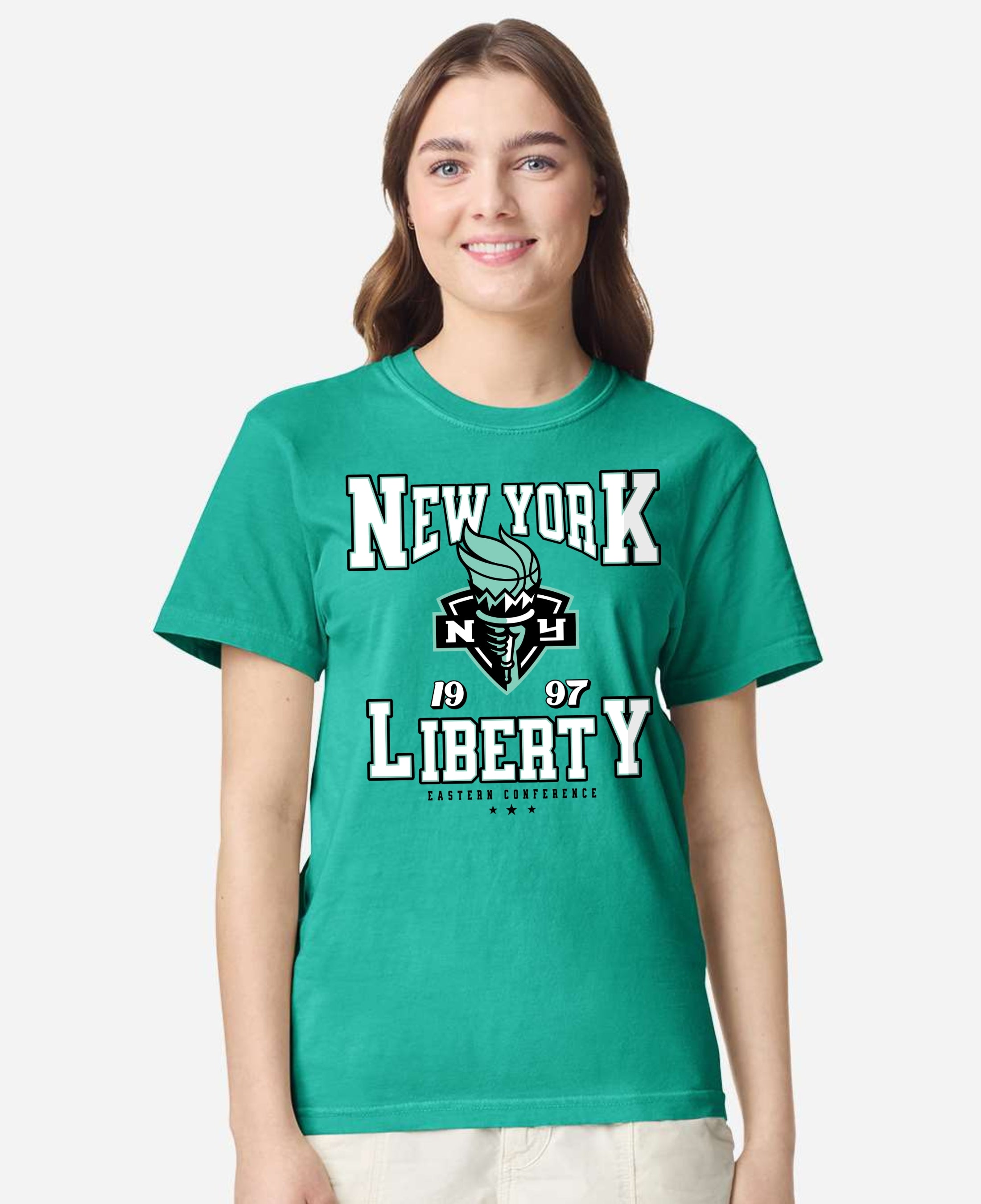 Show your pride for the New York Liberty with this vintage-inspired unisex tee, featuring bold collegiate lettering and the team’s classic logo front and center. Designed for ultimate comfort, this soft-washed, relaxed-fit shirt offers a lived-in feel from day one—perfect for game days, casual outings, or lounging in style. The durable heavyweight cotton fabric ensures long-lasting wear, while the timeless design celebrates the Liberty’s inaugural season and Eastern Conference legacy.