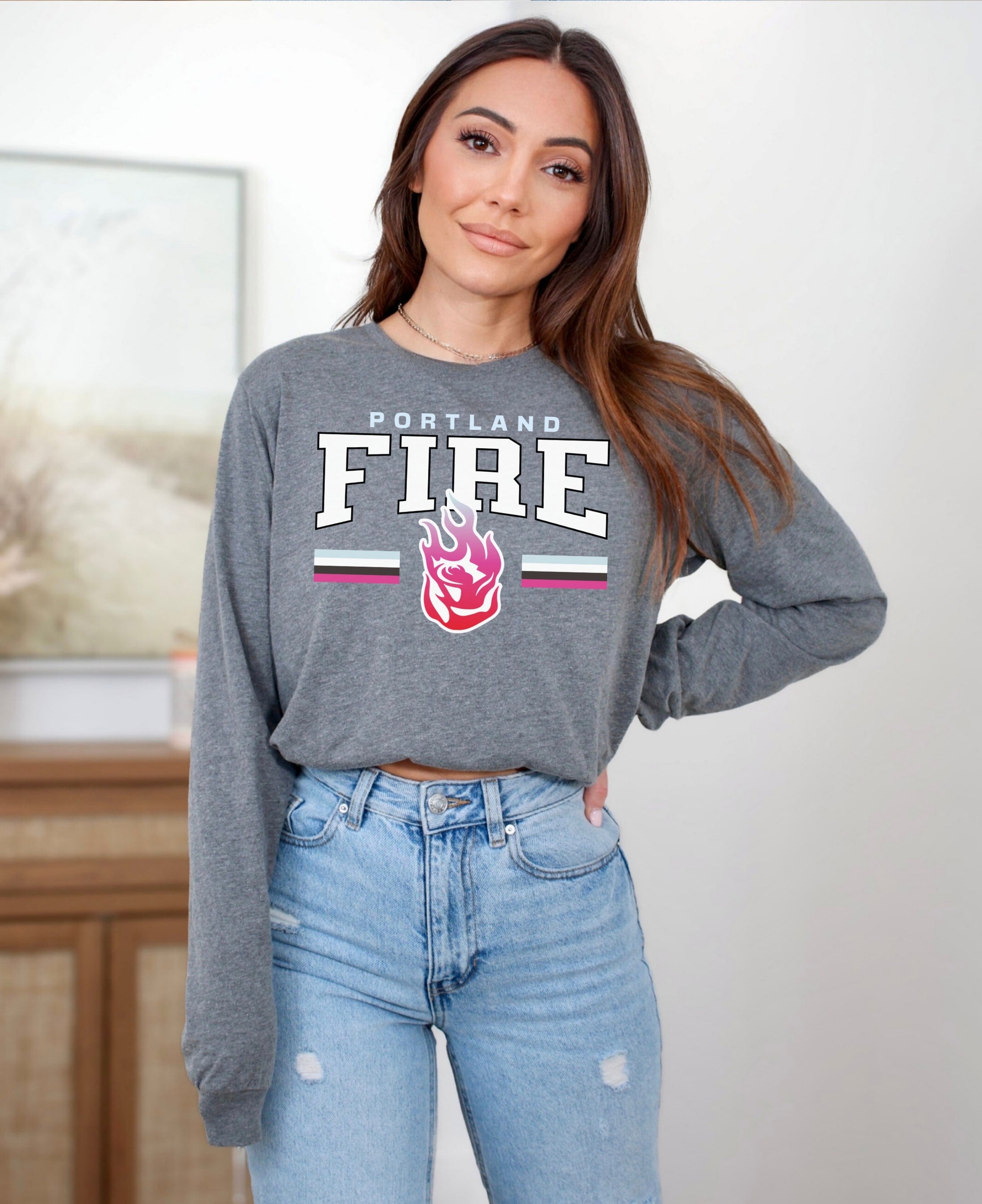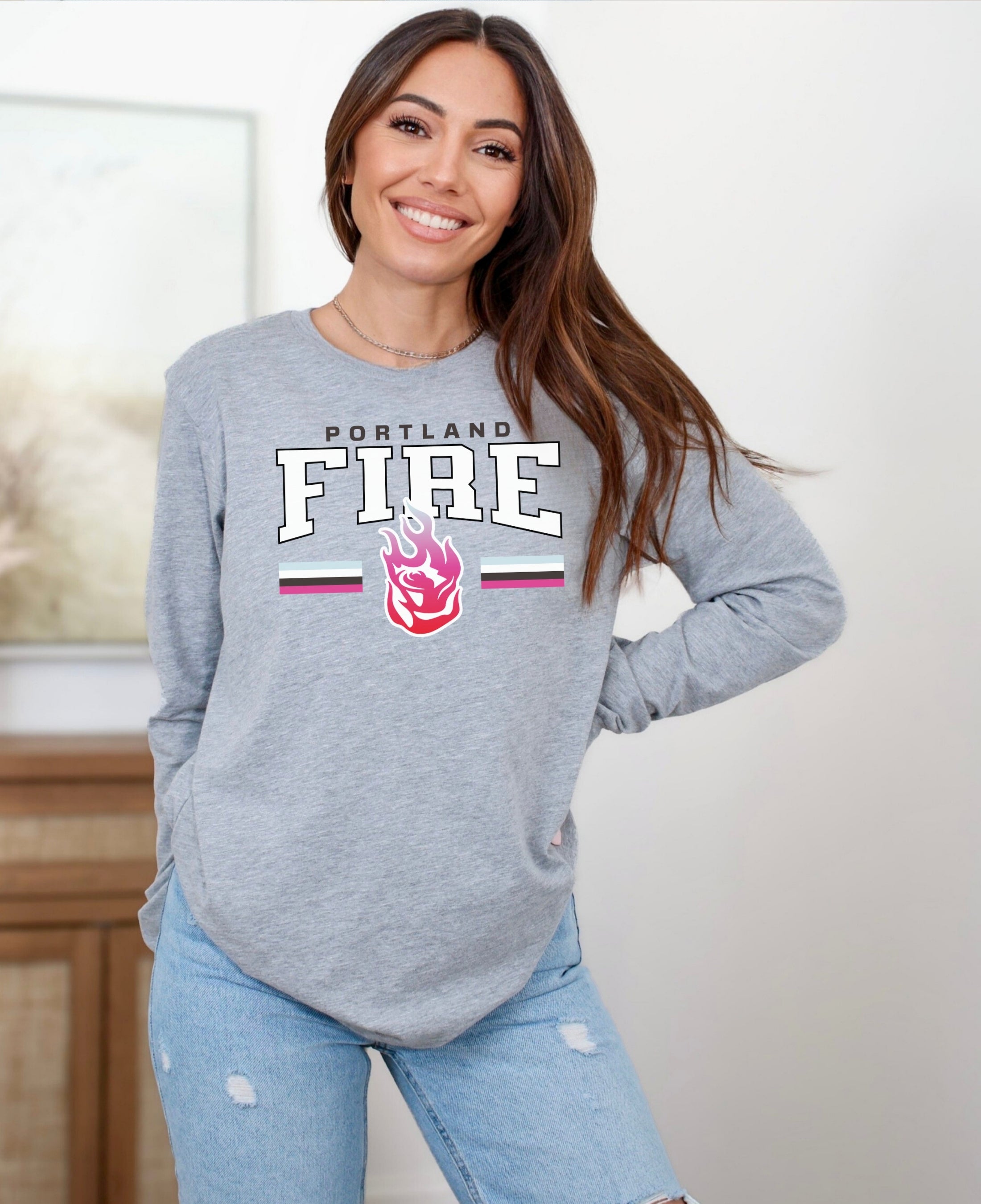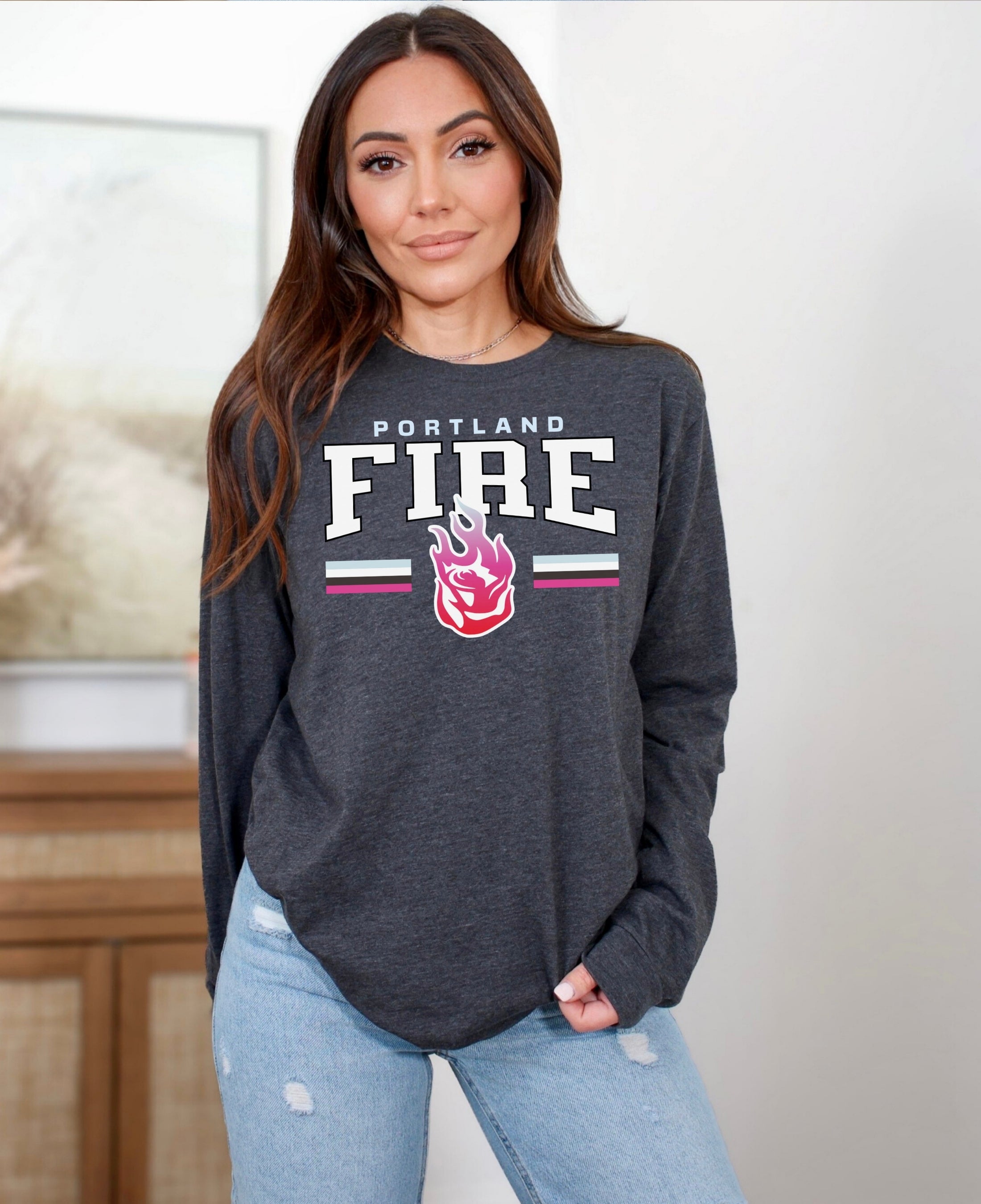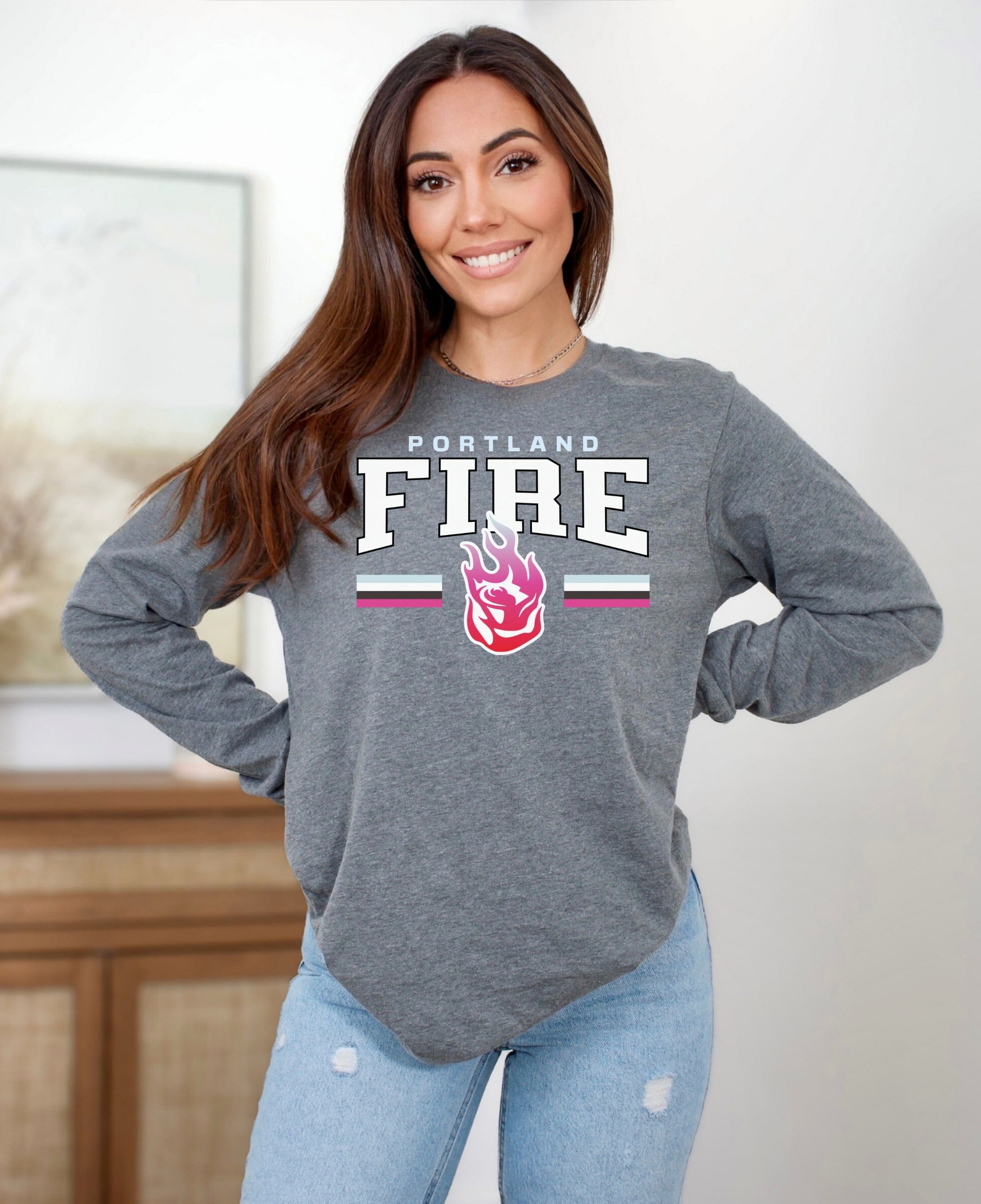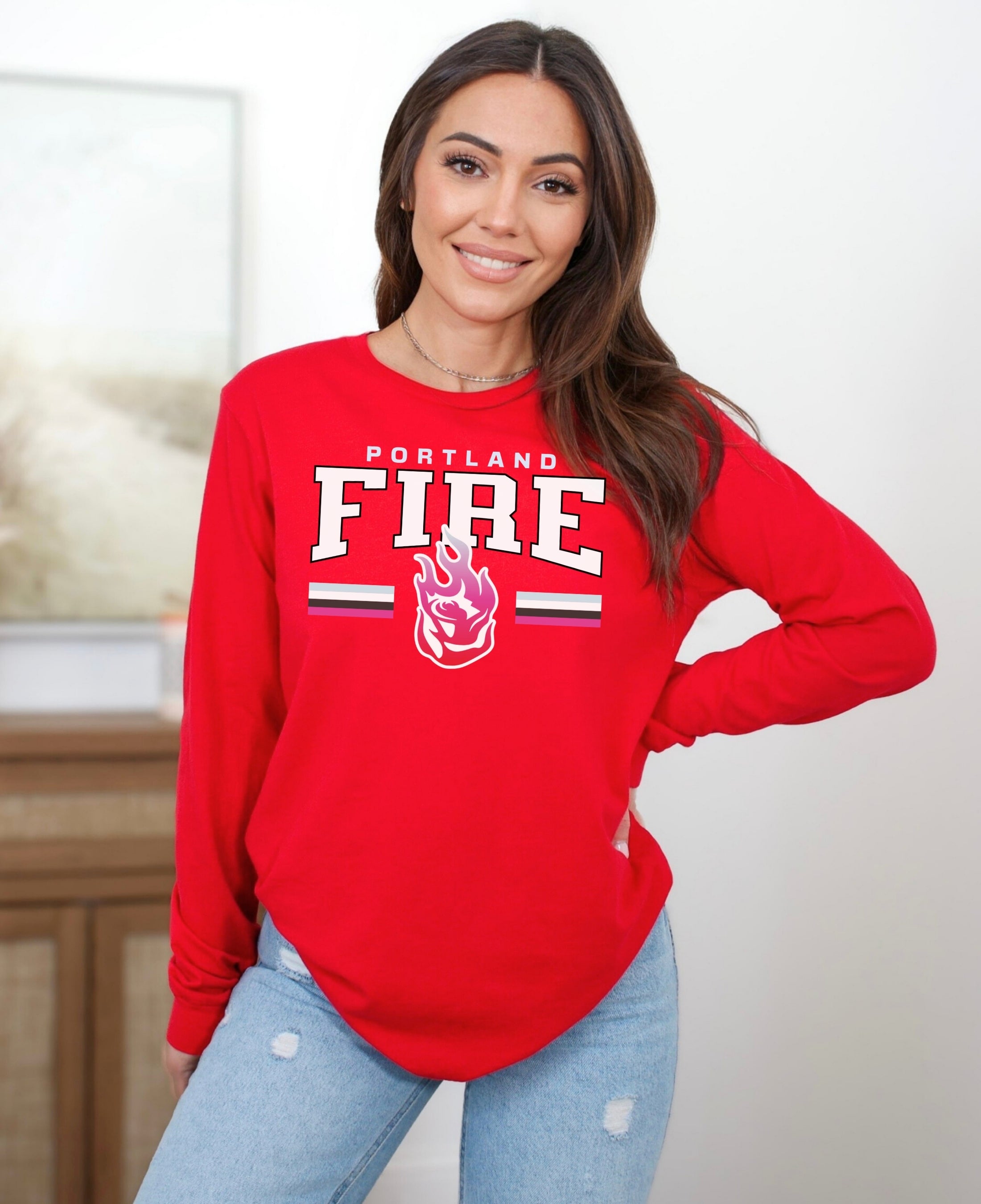 Cheer on your team in style with the Portland Fire Fast Break Long Sleeve T-Shirt. Made from soft, breathable cotton, it offers all-day comfort whether you’re at the game, watching from home, or repping your team around town. Perfect for layering or wearing solo, this Fire long sleeve shirt is a must-have for WNBA fans and women’s basketball supporters who want to show their pride year-round