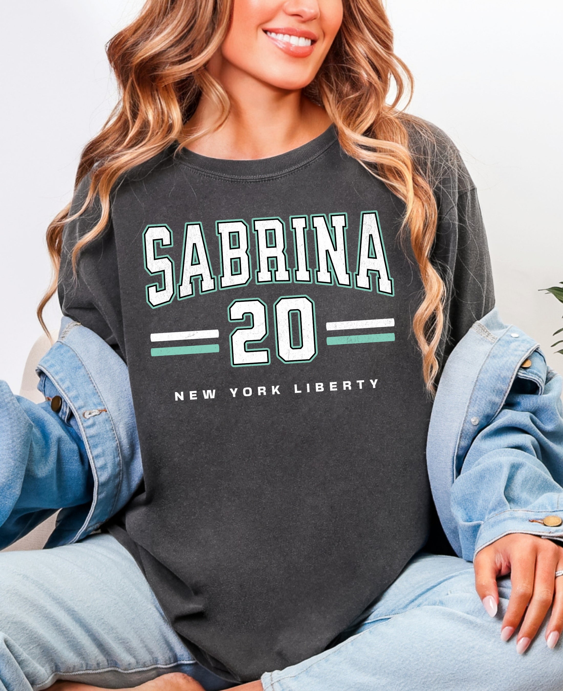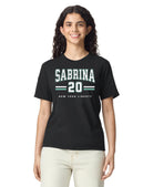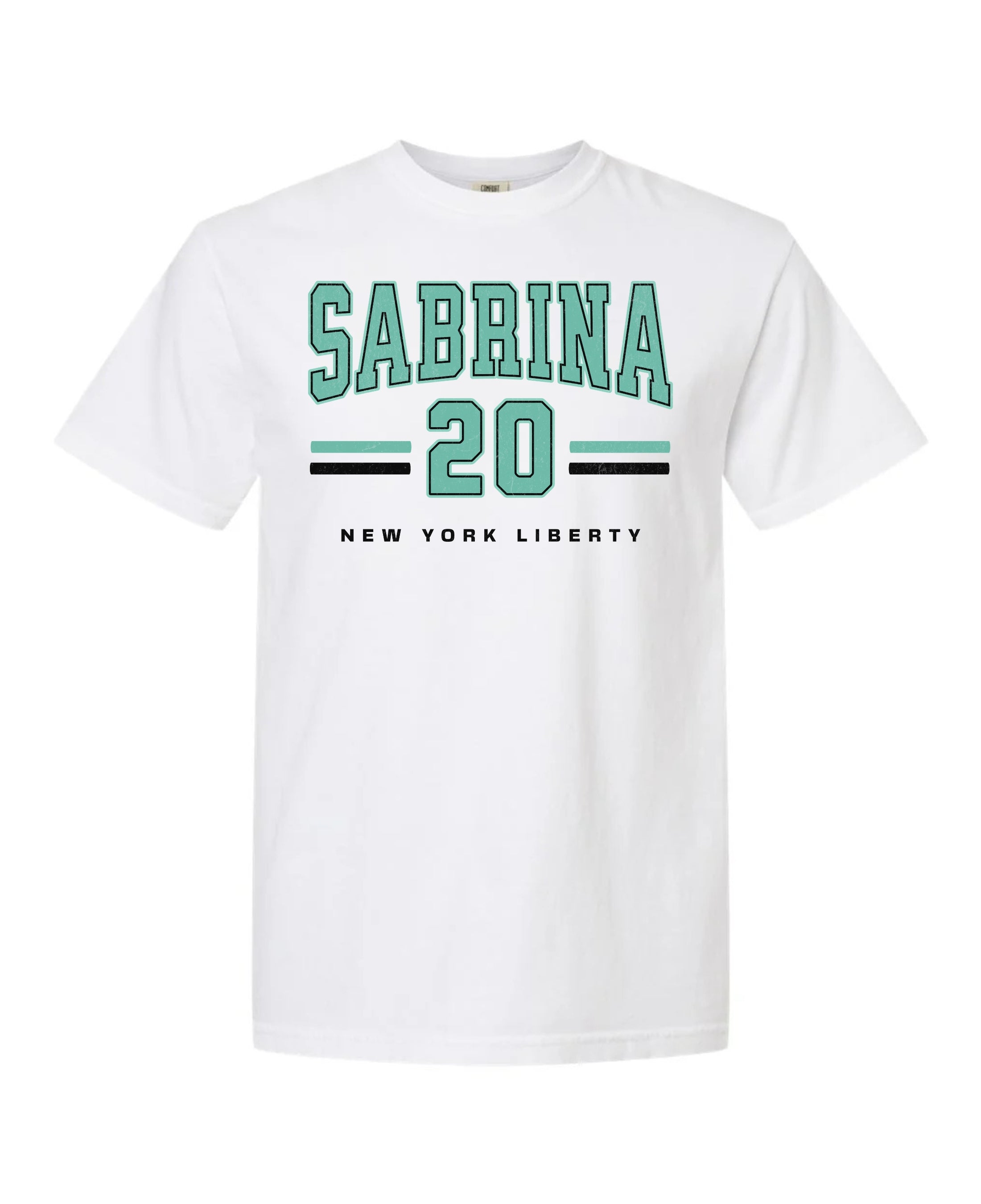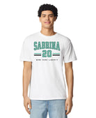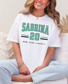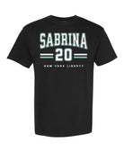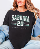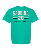Rep your favorite player in style with this bold Sabrina New York Liberty shirt! Featuring a standout varsity design, this tee proudly showcases "Sabrina" and the number 20 with classic athletic stripes and official New York Liberty branding. Whether you're heading to the Barclays Center or watching from home, this shirt lets everyone know who you're backing on the court.