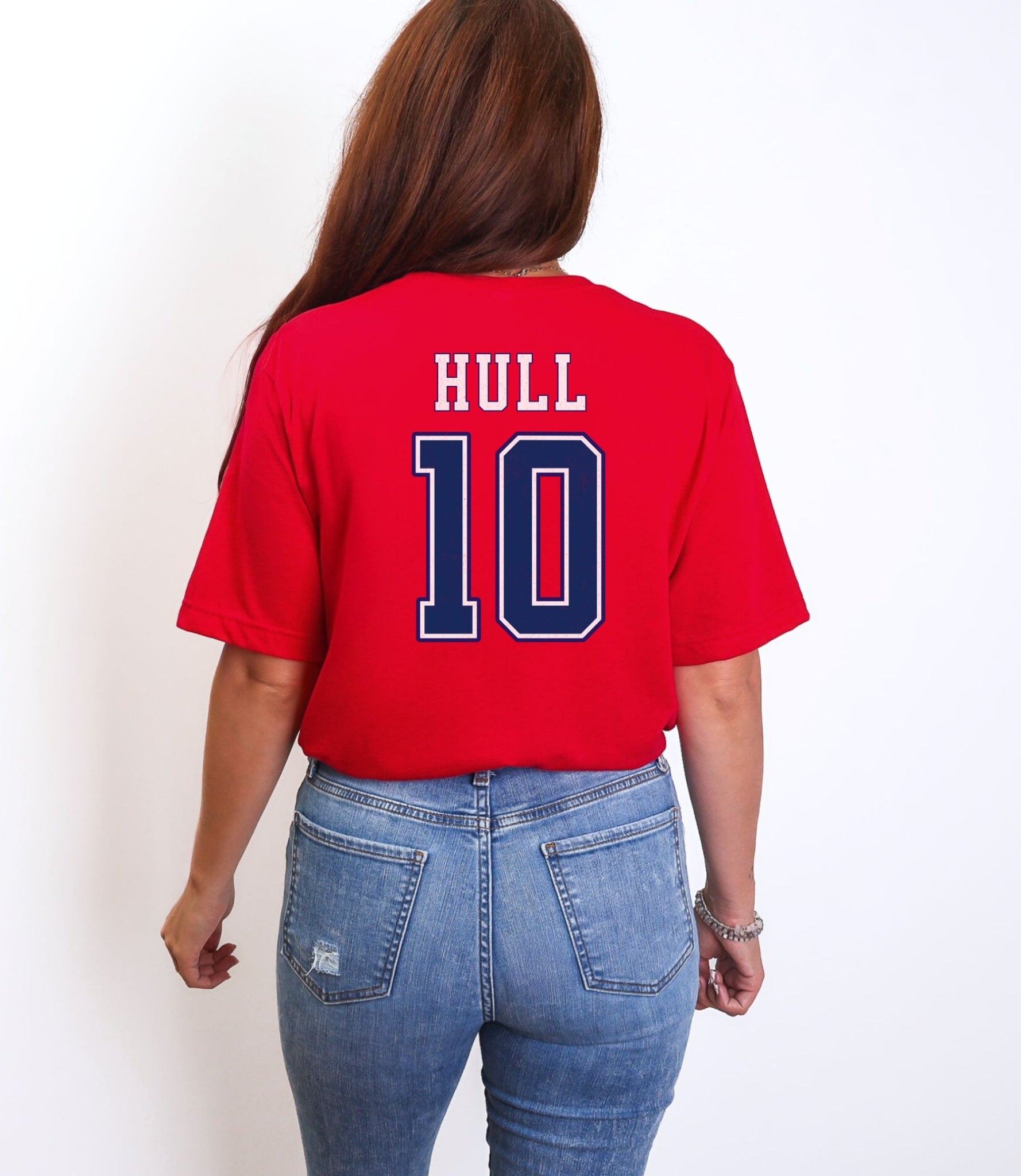 Girl wearing my students stole my heart t-shirt in red