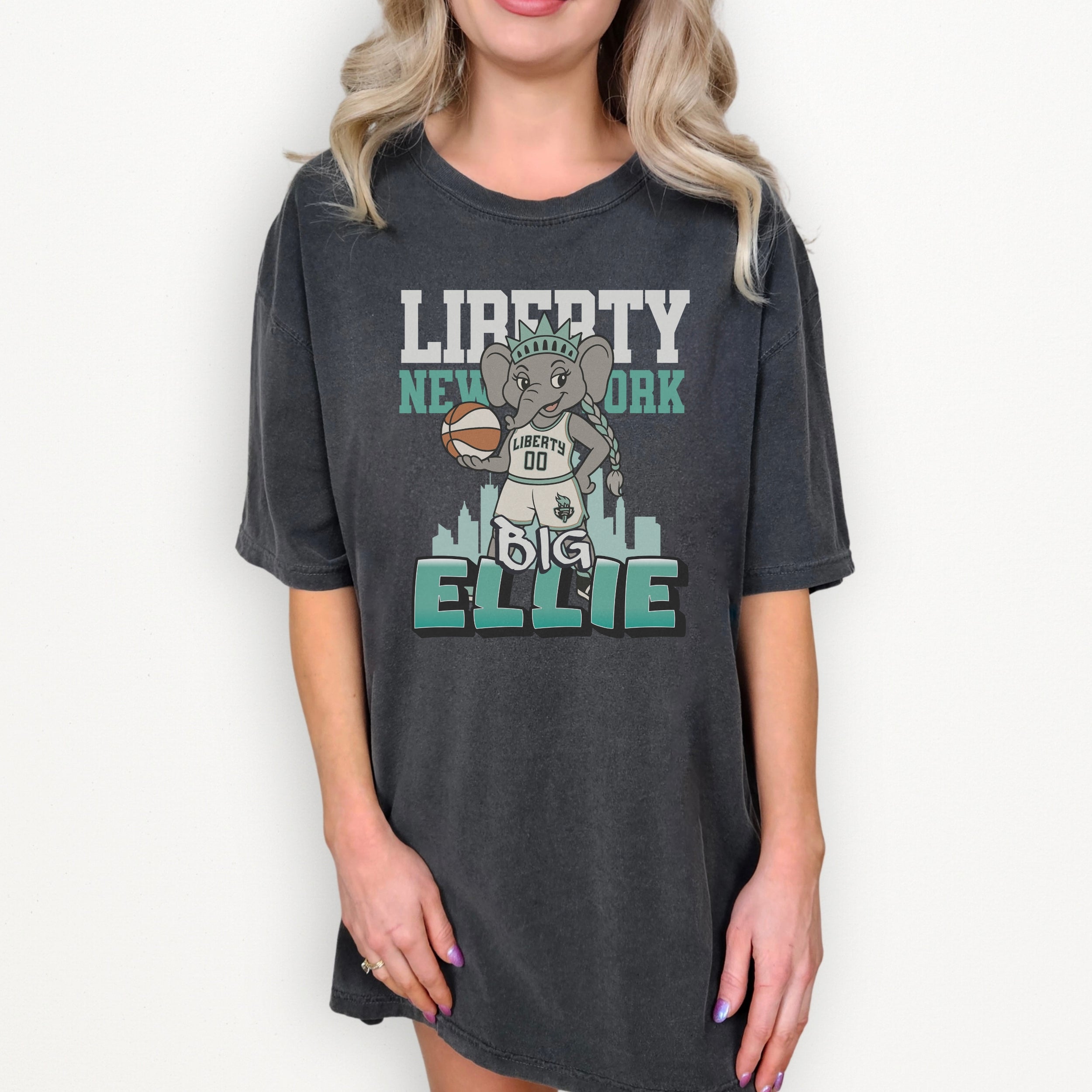 Get ready to show off your Big Ellie pride with this New York Liberty Comfort Colors® T-Shirt! Featuring the beloved Big Ellie mascot and support for the WNBA's New York Liberty team, this shirt is perfect for any fan.