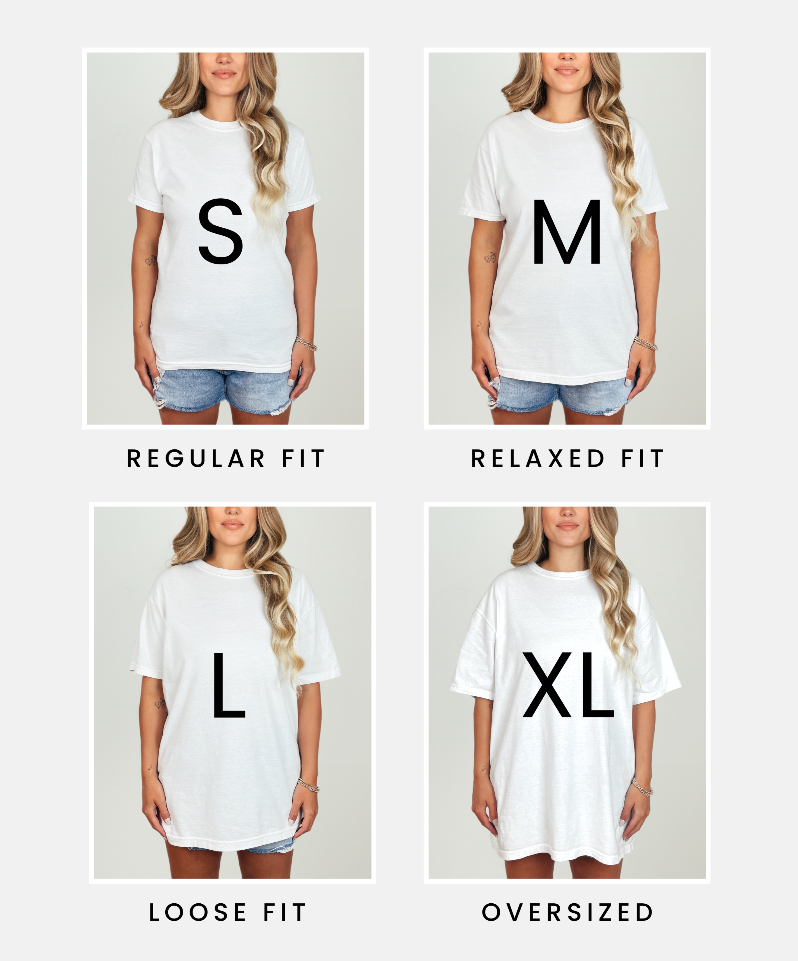 - For an oversized look, size up two sizes.
